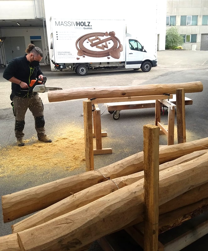Bei der Planung legten wir nicht nur Wert auf eine natürlich geschwungene Grundform. Auch der Einsatz von starken Ästen als Säulen und zusätzlich echten Ästen als Geländer sorgt optisch für spielerische Formen, weit weg von jeglicher Strenge. Innerhalb von wenigen Wochen war das Spielpodest individuell geplant und aufgebaut. Dabei haben wir selbstverständlich hohen Wert auf die Sicherheitsvorschriften wie zum Beispiel das Spaltmaß gelegt, um nicht nur harmonische, sondern auch sichere Voraussetzungen für die neue Spielumgebung zu schaffen.